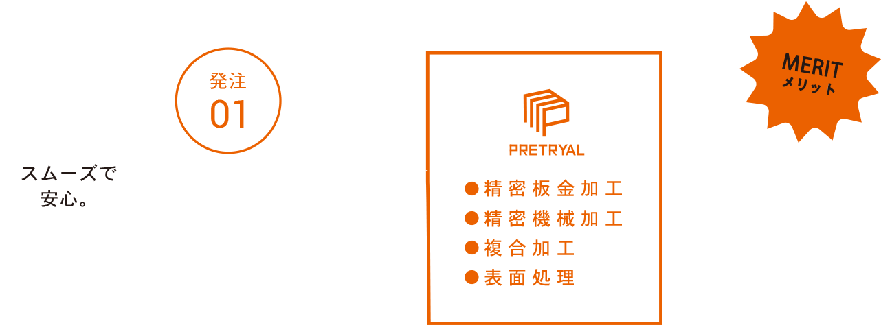 また、精密板金、切削加工、複合技術による複合加工を行う一貫した社内生産体制により、安易な納期調整・外注費カット・品質の安定化を図れます。